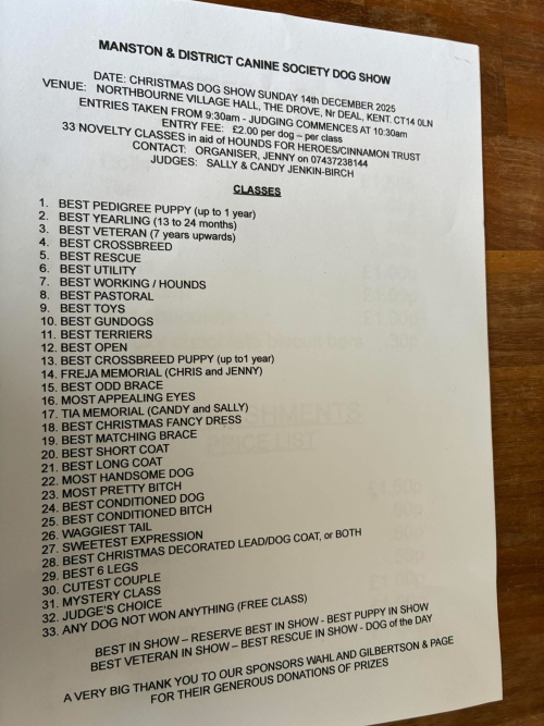 Sunday 14 December - Manston and District Canine Society Christmas Dog Show