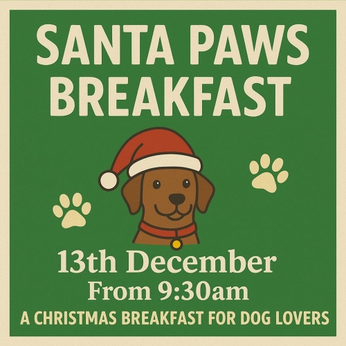 Join us for our Santa Paws Breakfast on Saturday 13th December from 9.30 — a Christmas breakfast especially for you and your furry friends!