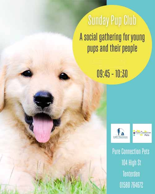Then come along to Sunday Pup Club, our monthly calm, on-lead social gathering at Pure Connection Pet Store Tenterden.