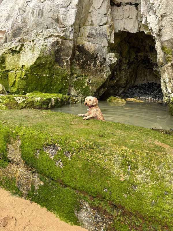 We also found a mini dog spa, a sea pool in the cliff face on the beach and Nancy found it first and swims in it (pictured!). It’s a great place and dog walkers love it!
