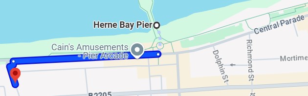 May to September if you are facing the pier then the beach is unrestricted on the right hand side. You are not allowed to take your dog between Herne Bay Pier and westwards to Lane End see google pic below.