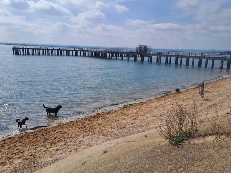 For dog-friendly beach fun on the Isle of Grain you can park at Grain Beach Car Park, free at time of writing. Thank you to Waggy Trails Adventure Days Queenborough