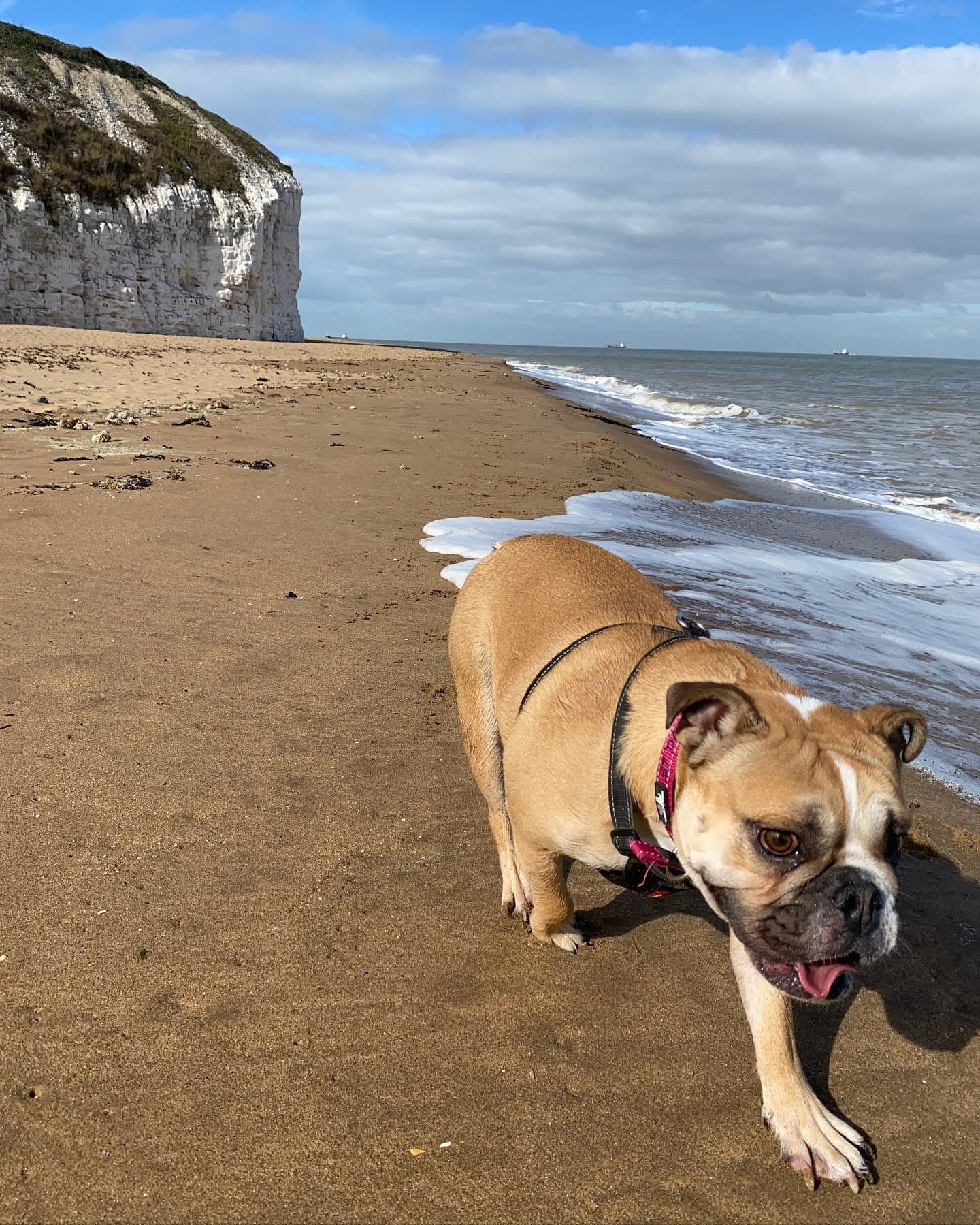 Dog-friendly Folkestone Warren beach is unrestricted all year round and Jolene loves it! Thank you for putting Folkestone on the map, note Sunny Sands is also good for dogs from October to April