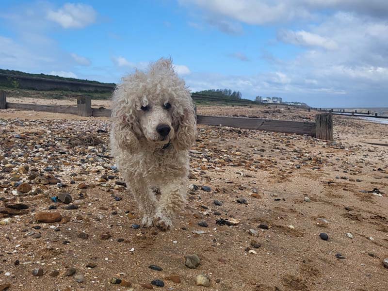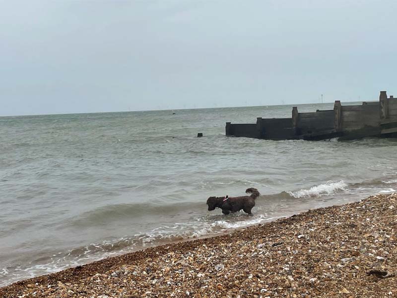 Joss Bay Broadstairs is unrestricted for dogs October to April inclusive and 6pm to 10am May to September. Pictured here Joey from Teall'n'Tails who is sadly no longer with us but loved the beach.