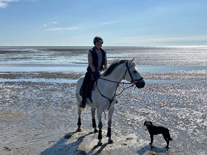 Stacy founder of Pawfest pictured on her horse with cockapoo Hugo.