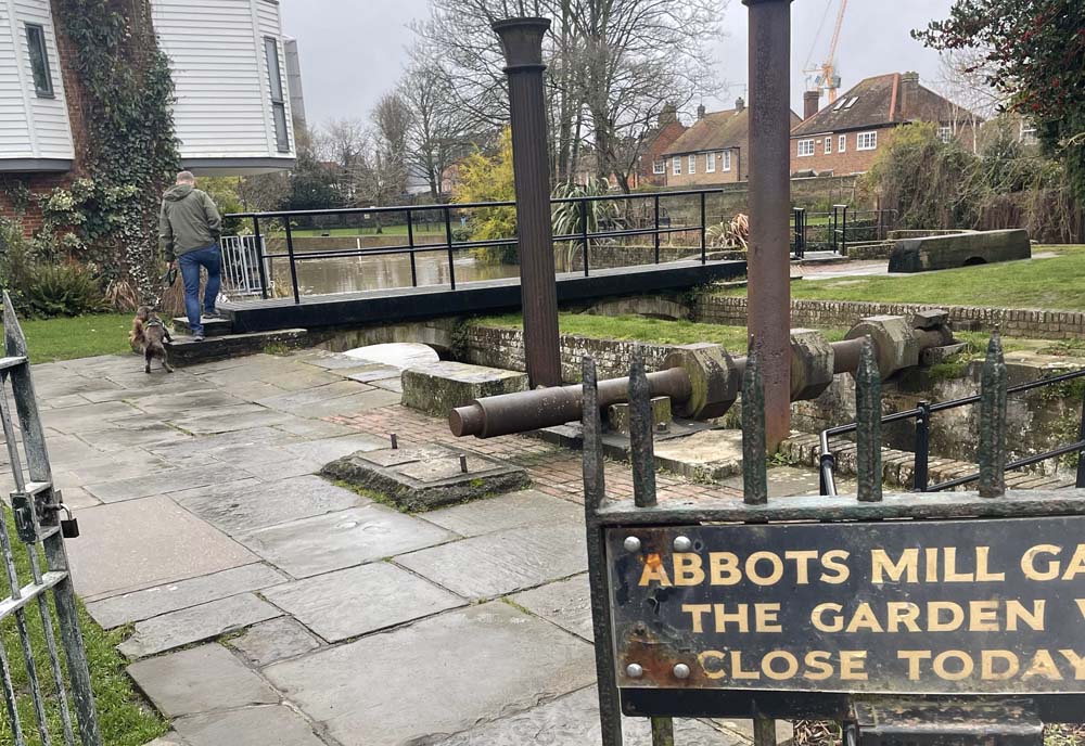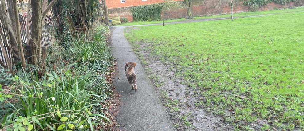 A short off-lead pit stop in Abbots Mill Garden to wear out Mr Toby before shopping and cafe training!