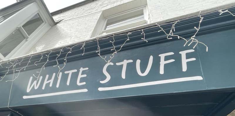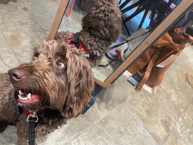 White Stuff got a big Dog Advisor thumbs up for human shopping with a dog, there was even a seat so we could have some doggy quiet time while our other human chose jeans! White Stuff is on the right fork in the road facing the Harbour.