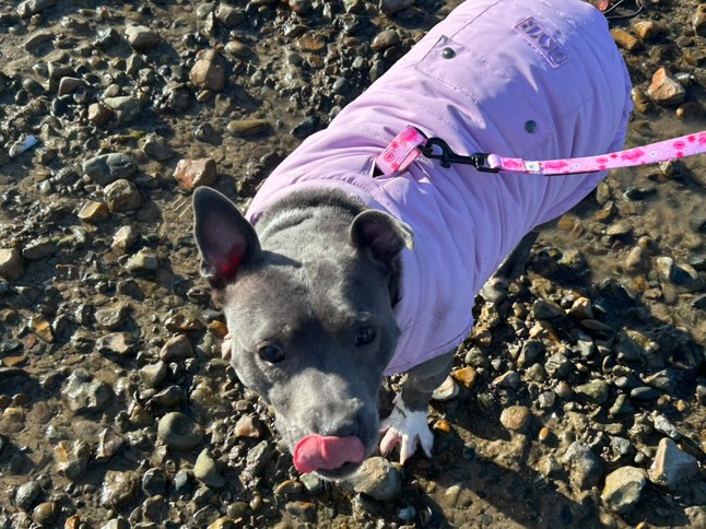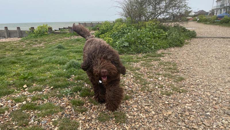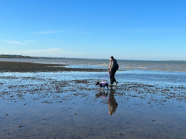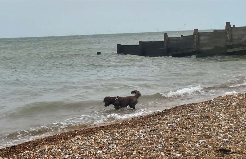 Lady loving Whitstable beach even if she did have to get her paws wet!This morning we went adventuring to Whitstable and took a walk along West beach, we had so much fun!!