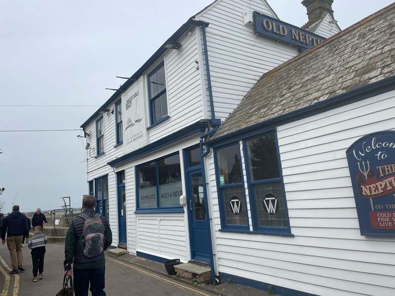 Continued past Old Neptune pub which allows dogs on lead inside and has some outside tables sea-side.