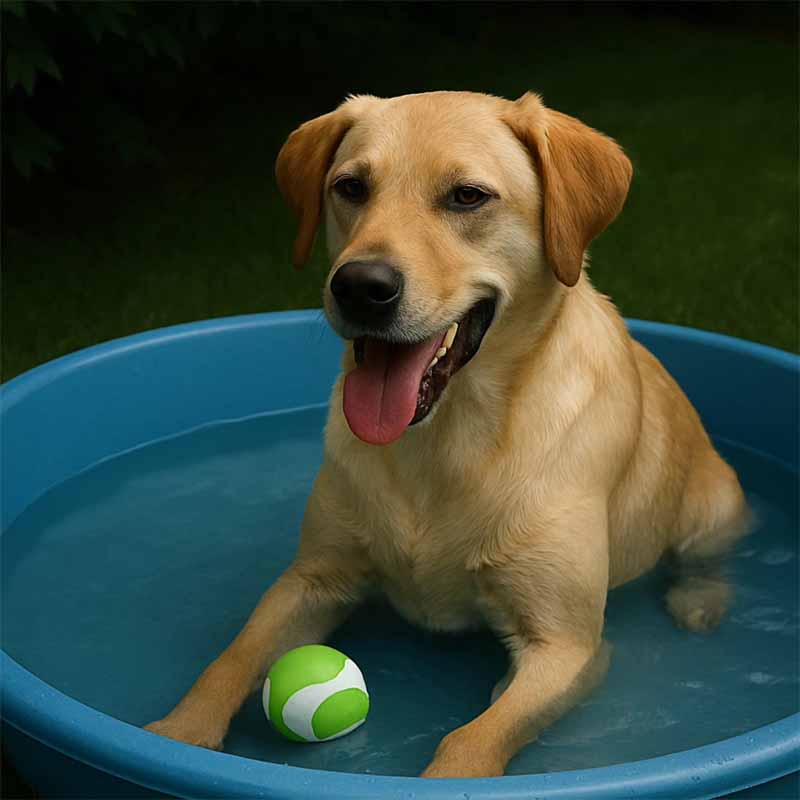 Fill a shallow paddling pool with cool water and add some water-safe toys for splashy fun- Set up a shady chill zone with a damp towel or cooling mat
